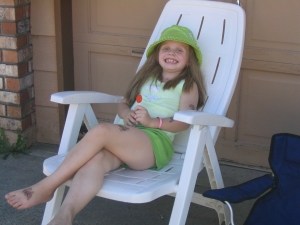 Lounging in the morning and enjoying the warm weather with a lollipop.