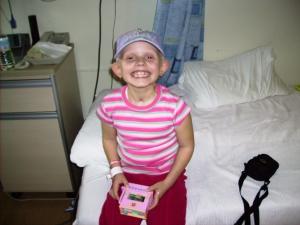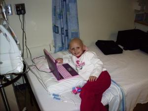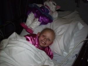 In the hospital due to low counts and a fever. Forcing a smile for Dad.
